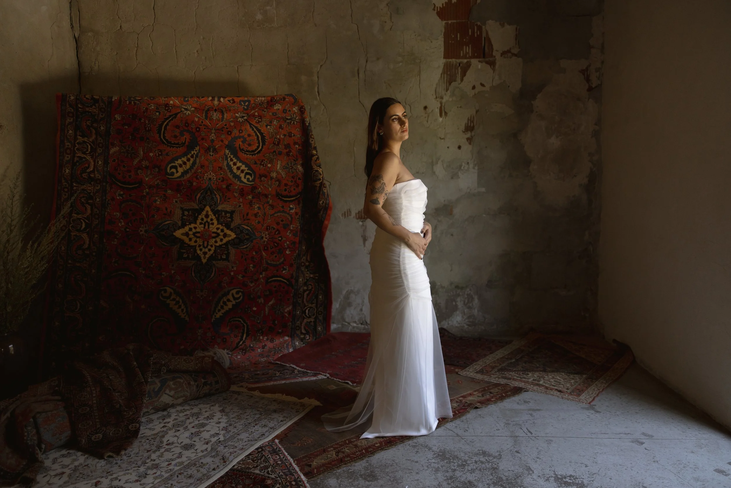 The Peace Veil is a romantic and timeless bridal accessory, crafted in delicate corded lace with a handkerchief cut that drapes effortlessly around the silhouette. Finished with a soft eyelash lace trim and a blusher layer, this veil offers depth, texture, and a sense of quiet elegance. Designed to complement both structured and ethereal gowns, the Peace Veil adds movement and grace — a modern heirloom for the contemporary bride.